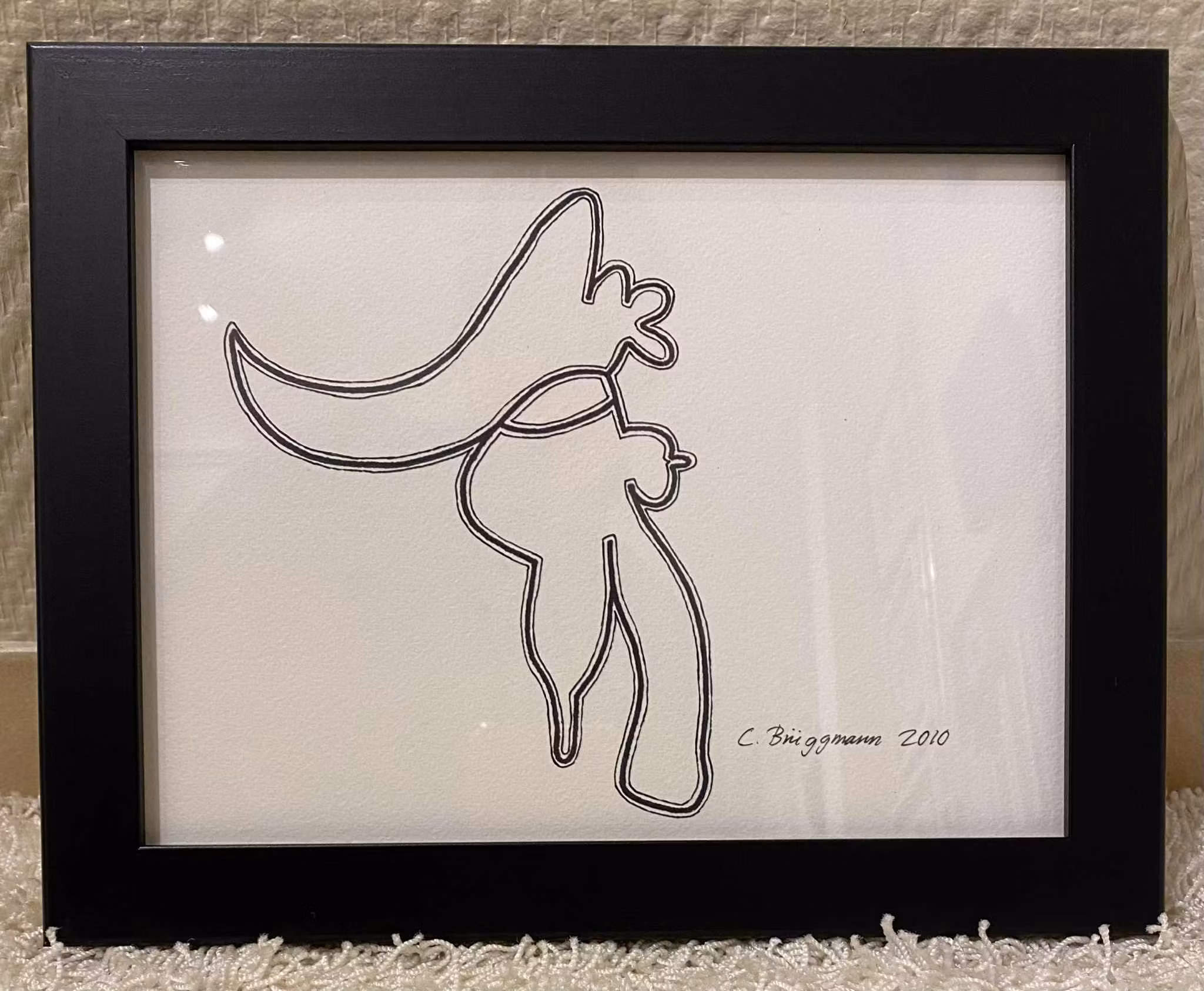 Denna tuschteckning, skapad av mig, konstnär Catharina Brüggmann, är omsorgsfullt inramad i en svart träram med glas och yttermåtten mäter 28x22 cm. Den kan både ställas eller hängas upp med hjälp av ståltråd på baksidan. Bläddra bland bilderna för detaljer